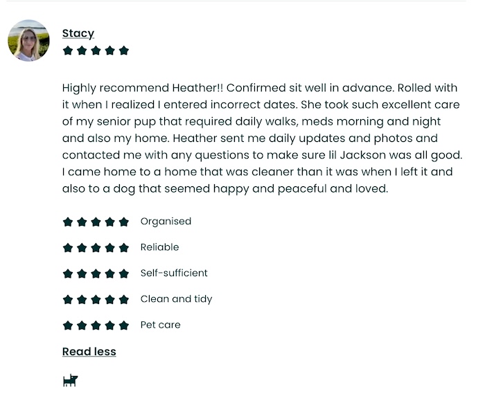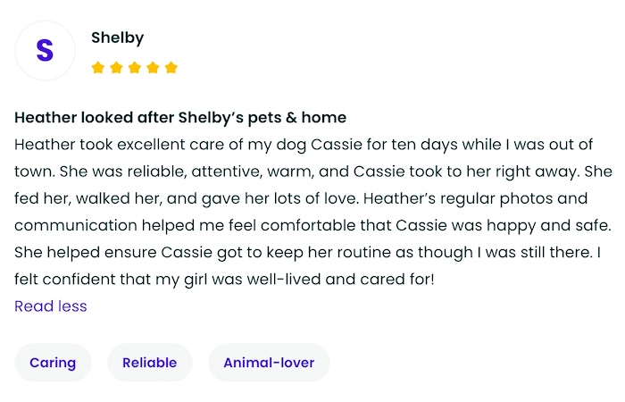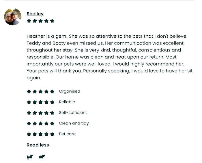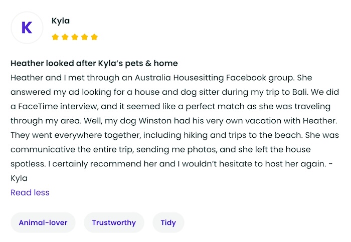 I offer house and pet sitting selectively as part of how I travel and live, and I’ve been caring for homes and pets for over 10 years. I’m responsible, reliable, organized, and conscientious in other people’s homes.